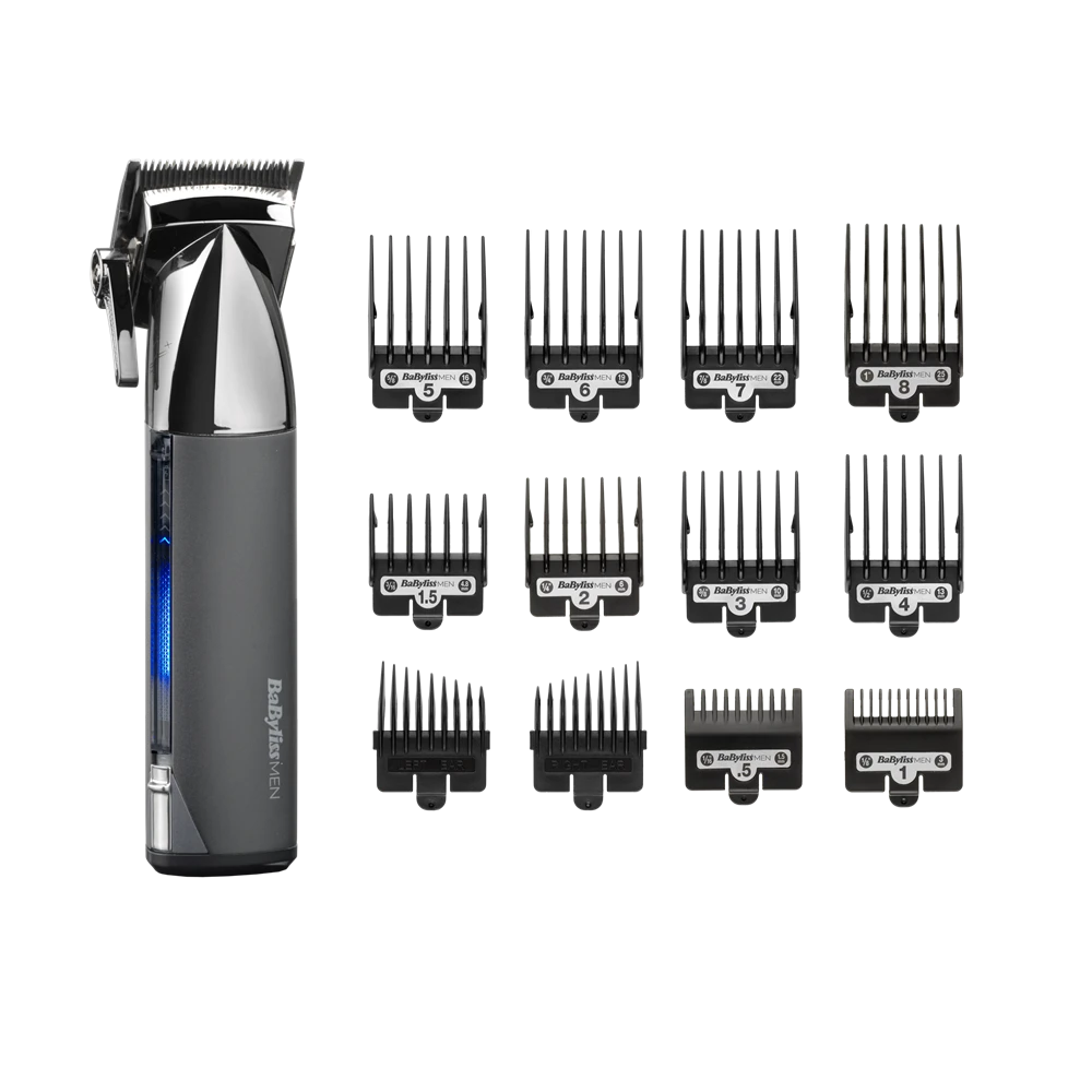 A vezérlőkar segítségével finomhangolhatja a vágást a még precízebb átmenetekért és formázásért. A csomag 10 vezetőfésűt tartalmaz 0,5-8-as méretekben (0,8 mm - 25 mm), valamint speciális, elkeskenyedő vezetőket a bal és jobb fül körüli területekhez.