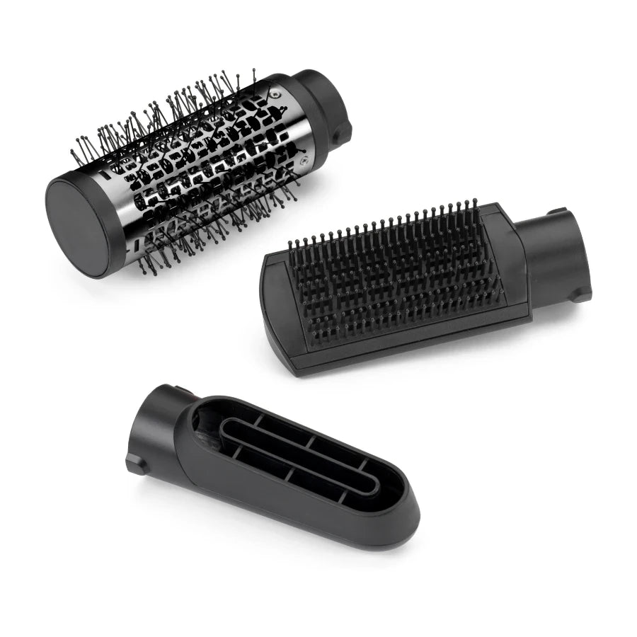 Készíts magadnak egy dús hatású, volumennel teli frizurát az 50 mm-es körkefével. Ha egyenesebb, természetesebb hatásra vágysz, válaszd a kemény sörtékkel ellátott lapos kefét. Az optimális eredmény érdekében pedig használd a szárító szűkítőt az előszárításhoz.